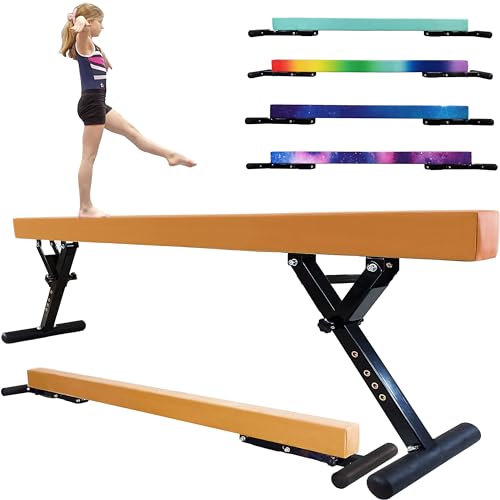 FC FUNCHEER Adjustable balane Beam for Kids - 8FT Gymnastics Beam - high and Low Floor Beam for All Gymnastic Levels-Professional Gymnastic Equipment for Home and Gym Center
