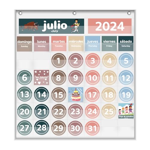 Monthly Calendar Pocket Chart for Classroom, Printed Days of The Week with Cards, Learning for Home or Kindergarten, Teacher Must Have Supplies That Fits Any School Décor (Spanish White)