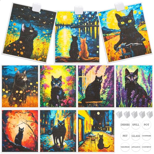 Lucomb 10 Pack Swedish Dishcloth Cellulose Sponge Cloths Bulk, Reusable Absorbent Kitchen Towels Dish Cloths Set Quick Drying Washable for Dishes Counters