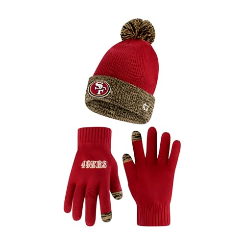 Ultra Game NFL Official Youth Super Soft Two Tone Winter Beanie Knit Hat with Extra Warm Touch Screen Gloves, San Francisco 49ers, Team Color, 1SIZE