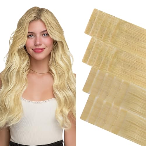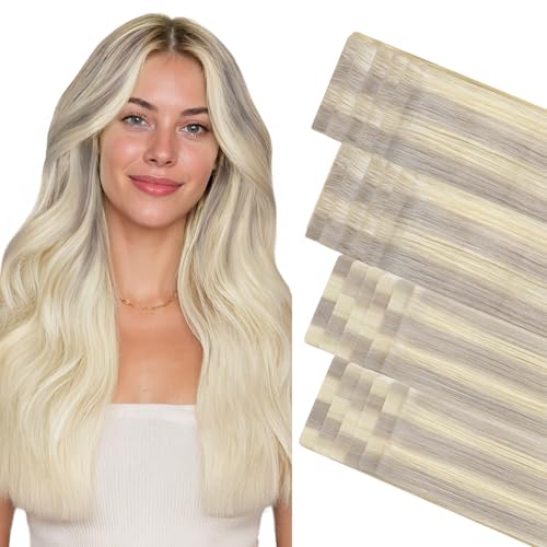 GOO GOO Invisi Edge Tape in Hair Extensions Human Hair, 18AT60A Pearl Ash Blonde Highlights10pcs injected with 10pcs classical tape ins, 18inch 50g, Virgin Remy Hair, Natural Look