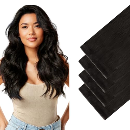 GOO GOO Invisi Edge Wide Tape in Hair Extensions,1B Natural black,4pcs 18inch 20g, Remy Human Hair,Seamless Injected Tape, Natural Look