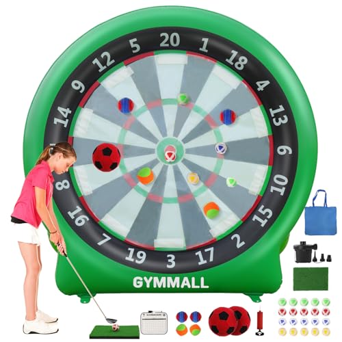 GYMMALL Giant Dart Board Inflatable 6 ft with Pump, Outdoor and Indoor Soccer Sport Kick Dartboard for Kids and Adults, Waterproof Darts Board Yard Game with 20 Golf Balls, 4 Sticky Balls, 2 Soccers