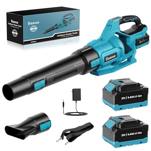Leaf Blower Cordless 21V, Battery Leaf Blower with 2 x 4.0Ah Batteries and Charger, 3 Speed Modes, Handheld Cordless Blower for Lawn Care, Blowing Leaves, Small Gravel, Blue