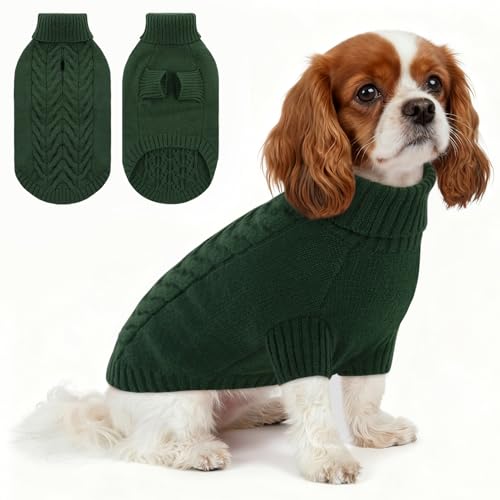 Dog Sweaters for Small Dogs Classic Turtleneck Dog Christmas Sweater Thick Warm Pullover Male Puppy Pet Stretch Knitwear Fall Winter Clothes with Leash Hole(Green, S)