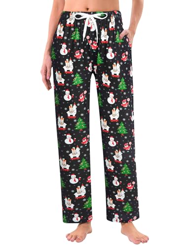 RAISEVERN Ugly Christmas Womens Pajama Pants Xmas Tree Snowman Alpaca Llama Penguin Lounge Sleep Bottoms Drawstring Wide Leg Pjs with Pockets Sleepwear