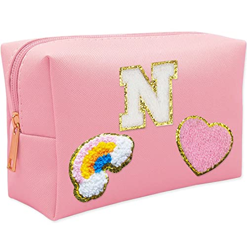 Personalized Inital Preppy Makeup Bag Set with Zipper, Monogram Waterproof Travel Cosmetic Bag for Women, Cute Preppy Patch Toiletry Bag for Traveling Outdoors, Gift Ideal for Christmas Thanksgiving