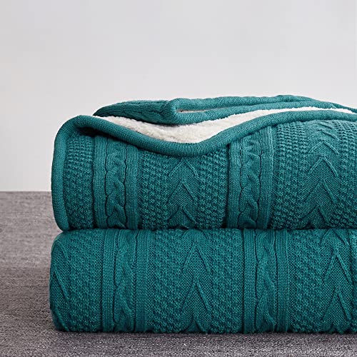 Longhui bedding Acrylic Cable Knit Sherpa Throw Blanket - Thick, Soft, Big, Cozy Lake Blue Knitted Fleece Blankets for Couch, Sofa, Bed - Large 60 x 80 Inches Coverlet All Season
