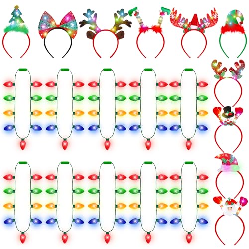 Blowata 20 Pack Christmas Party Favors, Light Up Christmas Necklace Headband, Xmas Bulb Necklace Antler Tree LED Flashing Headpiece for Xmas Gifts Holiday Party Supplies Accessories, New Year Bulk