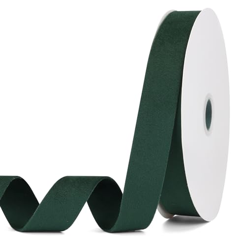 Pieaary Dark Green Velvet Ribbon 1 Inch x 20Yd,Double Faced Premium Velvet Ribbon for Gift Wrapping Handmade Crafts Bow Making,Christmas and Wedding Decoration(1" Dark Green)