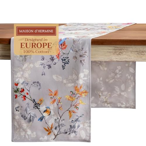Maison d' Hermine Table Runner 100% Cotton Double Layer Table Runners 108 inches Long for Thanksgiving Christmas Decorations Home Kitchen Dining Party Wedding (Equinoxe - Grey, 14.5" x 108")