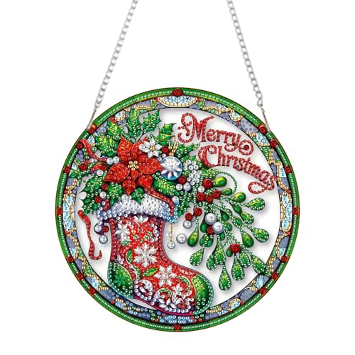 ARPADAMO Diamond Art Hanging Kit for Adult,Special Shaped Rhinestone,DIY Acrylic 5D Diamond Art Painting Window Pendants Home Garden Wall Hanging Kits Hanging Ornament(Christmas Socks)
