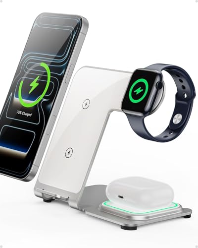 Intoval 3 in 1 Wireless Charger for iPhone 17/16/15/14/13/12,Wireless Charging Station for Apple Devices, Aluminum Charging Stand for iWatch 11 10 9 Ultra 3/2 SE 3/2,for AirPods 4 3 2 Pro 3/2