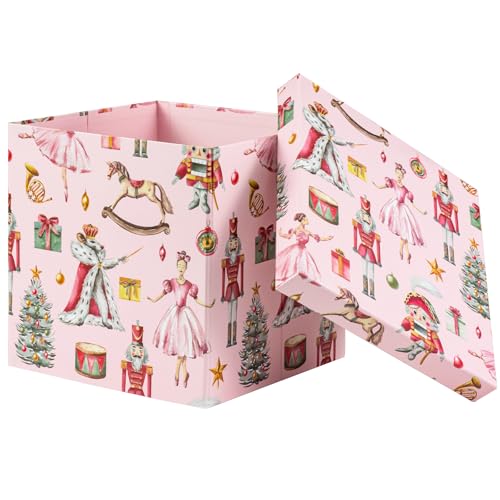WRAPAHOLIC 9" Christmas Gift Box with Lid - King and Nutcracker Design Gift Box and 2 Pcs Tissue Paper for Christmas, Holiday, Party, Gift Giving and More