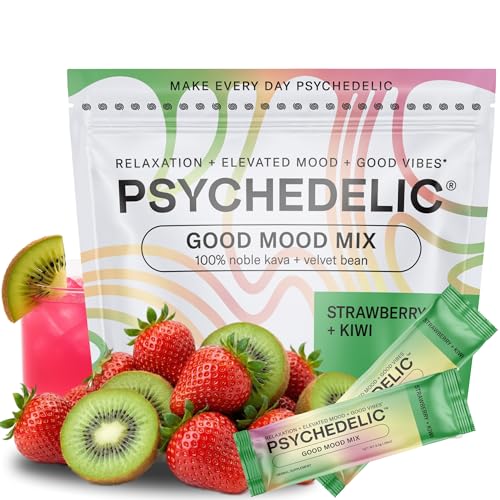 Psychedelic Water Calming Kava Drink Mix - Kava kava Flavored Drink Mix - Easy Open Single-Serving - Flavored Kava - Mucuna Pruriens - Stevia - Adaptogen Mocktails - 14 Sticks - Strawberry Kiwi