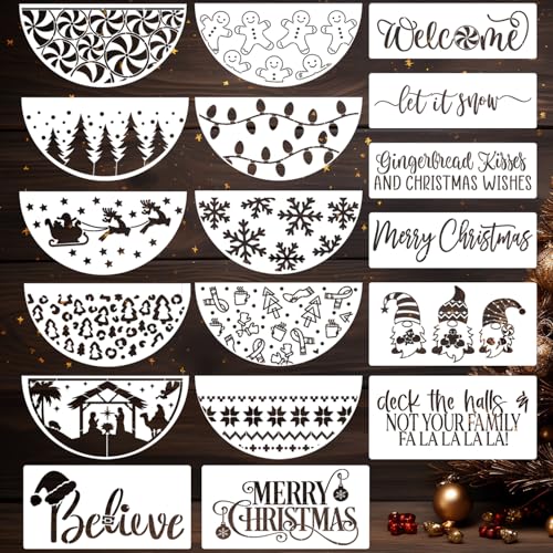 Christmas Stencils for Painting on Wood 12” Christmas Stencils for Crafts Reusable Holiday Doormat Stencil for Porch Hanger Fabrics Decor