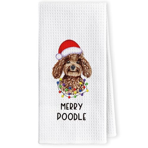 LKETW Christmas Poodle Kitchen Towels Dish Towels, Christmas Kitchen Towels, Poodle Gifts, Dog Decorative Hand Towels for Kitchen Bathroom Christmas Decor, Dog Lover Hand Tea Dish Towels 16x24in
