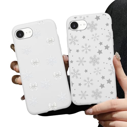 Aoldimu Christmas Snowflakes Winter Xmas Phone Cases for iPhone 16e Case Shockproof Soft Silicone Protective Phone Cover Funda for iPhone 16e 6.1 Inch White
