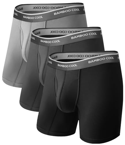 BAMBOO COOL Men's Ultra-Soft Breathable Boxer Briefs 3-Pack - Moisture Wicking Underwear | Comfort Fit, Tagless