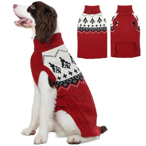 FUAMEY Winter Dog Sweaters Sleeveless, Extra Large Sweater Doggy Snow Day, Thermal Dogs Clothes Cable Knit Pullovers, Turtle Neck Pet Outfits Cold Weather, Corgi, Beagle, Sheltie (Red, XL)
