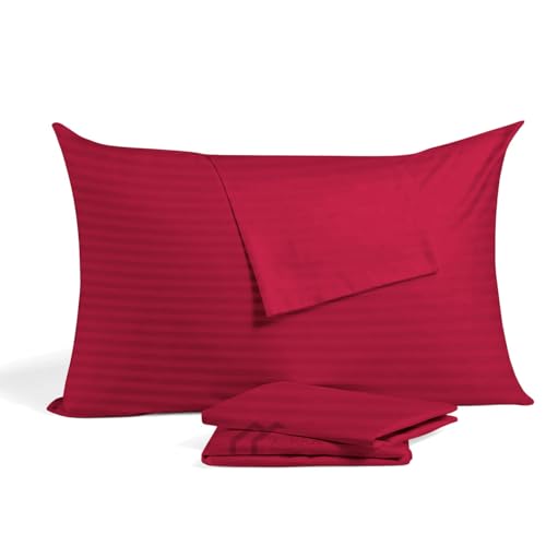 Toddler Travel Pillowcase 14x20 Inch, Burgundy with Zipper Closure Pack of 2 Pillow Covers, 100% Egyptian Cotton, 550 Thread Count Small Pillows Cover Size 14"x20", Burgundy Striped