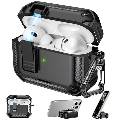 RFUNGUANGO Compatible AirPods Pro 2nd Generation Case with Phone Holder and Compatible Back Magnetic Suction Function, Suitable for AirPods Pro 2 Case, Black