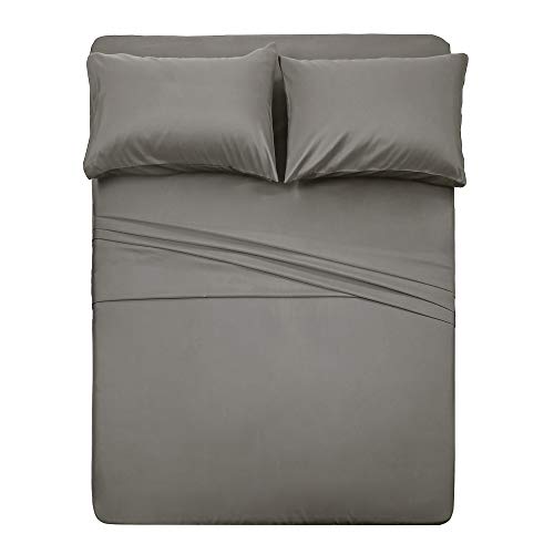4 Piece Bed Sheet Set (Queen,Gray) 1 Flat Sheet,1 Fitted Sheet and 2 Pillow Cases,Brushed Microfiber Luxury Bedding with Deep Pockets