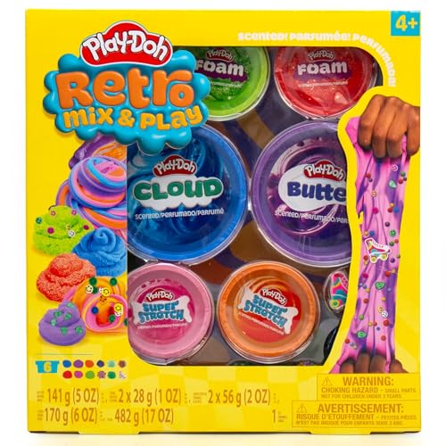 Play-Doh Retro Mix & Play Scented Compounds – Cloud, Butter, Foam, Super Stretch, Sensory Dough, Kit, Gifts for Kids, Sensory Toys, Party Favors for Kids 8-12, Playdoh Compound Packs