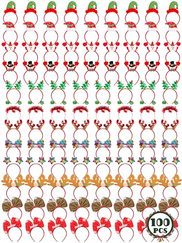 HOVACY 100 Pcs Christmas Headband, Christmas Headbands for Women Xmas Headbands for Adults Xmas Decorations Photo Booth Props