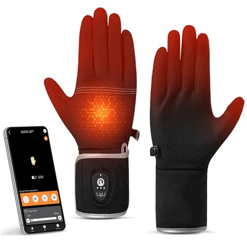 Savior Heated Glove Liners for Men Women,APP Smart Electric Heated Gloves with Remaining Power Display,Rechargeable,Suitable for Driving,Typing,Running,etc.