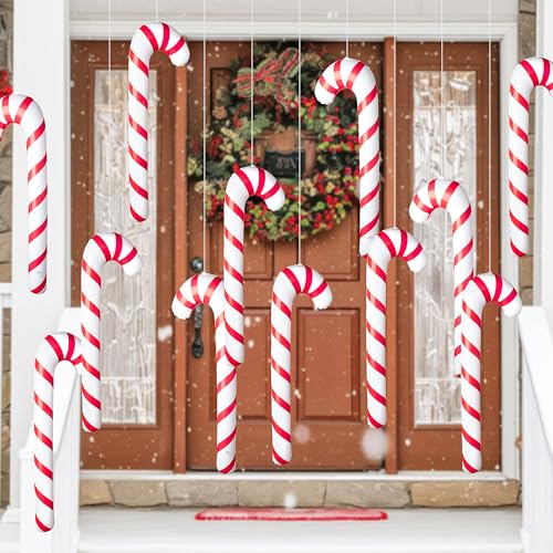 Haooryx Inflatable Christmas Candy Canes - 12-Piece Inflatable Candy Canes Hanging Ornament Rope Hooks Blow Up Christmas Winter Xmas New Year Candy Toys Party Outdoor Garden Yard Lawn Door Decor
