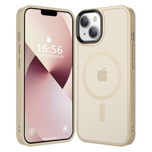 CHEZEAL Compatible with iPhone 14/13 Case [Compatible with Magsafe & Military-Grade Protection] Slim Magnetic Translucent Matte Phone Case for iPhone 13/14 6.1'', Light Gold