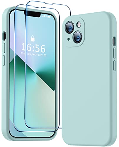 BossKiss Compatible with iPhone 13 Case, Premium Silicone Upgraded [Camera Protection] [2 Screen Protectors] [Soft Anti-Scratch Microfiber Lining] Phone Case for iPhone 13 6.1 inch - Mint