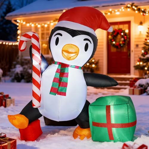 6 FT Christmas Inflatables Decorations Outdoor,Inflatable Penguin with Candy Canes, Outdoor Holiday Yard Decoration with LED Lights, Blow Up Decor for Lawn