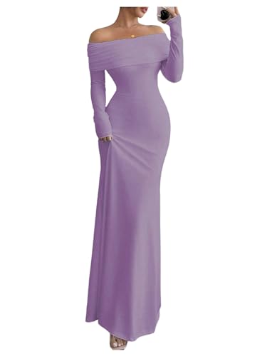 SOLY HUX Women's Long Sleeve Off The Shoulder Bodycon Dress Elegant Maxi Dress Cocktail Prom Dresses Mauve Purple Large