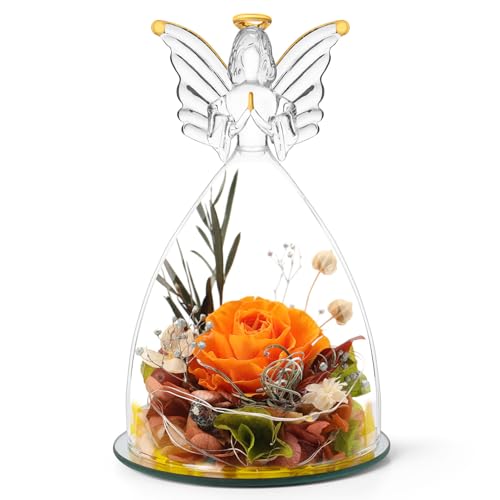 Angel Christmas Roses Gifts for Mom,Preserved Real Flowers Roses in Glass Angel Figurines,Christmas Birthday Gifts for Grandma Women Mom Wife Mother in Law