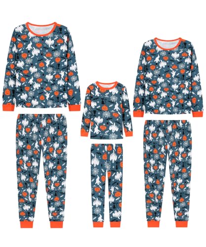 Joyond Matching Family Halloween Pajamas Women Halloween PJs 100% Cotton Holiday Pjs Spooky Sleepwear Long Sleeves Sets Woman Size S