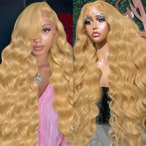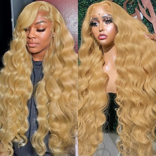 KOTTN 30 Inch Honey Blonde Wig Human Hair 200% Density 13x6 Body Wave lace Front Wigs Human Hair Pre Plucked HD Transparent Lace Frontal Wigs Human Hair for Women