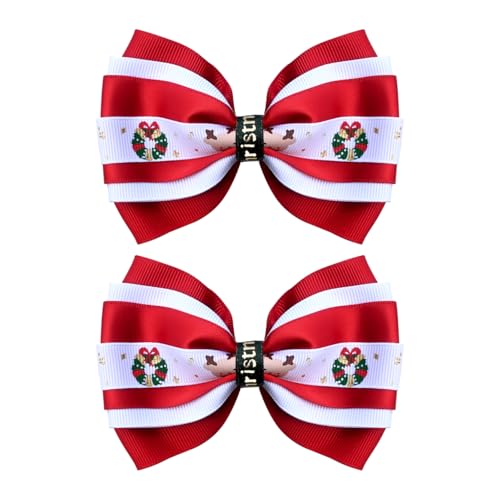 2PCS Christmas Hair Bows for Girls 4 Inches Elk Grosgrain Ribbon Hair Accessories Small Plaid Xmas Boutique Hair Clips Elk Christmas Bows Red White Hair Accessories for Toddler Baby Girls