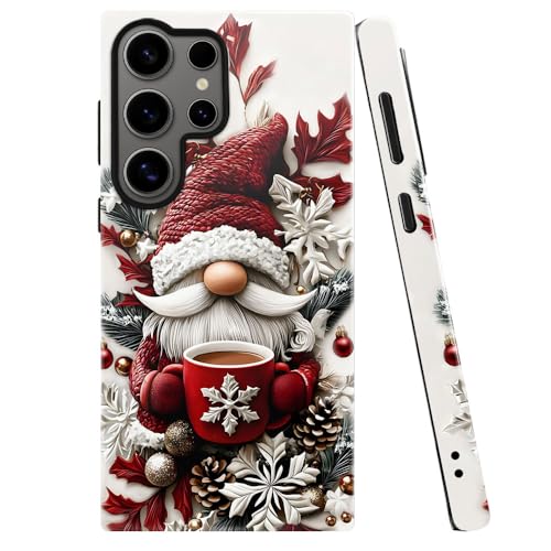 TnXee Case for Samsung Galaxy S24 Ultra,Gnome with Coffee Merry Christmas Phone Case Drop Resistant Glossy 2 in 1 Solid Dual-Layer Cover for Girl Women