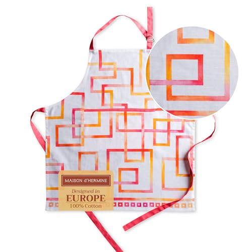 Maison d' Hermine Apron for women with Pocket 100% Cotton 27.50"x31.50" 1 Piece Adjustable Neck Strap & long ties Apron Men, Chef, Wedding, Cooking, Gardening, Server Spring/Summer (Summer Maze)