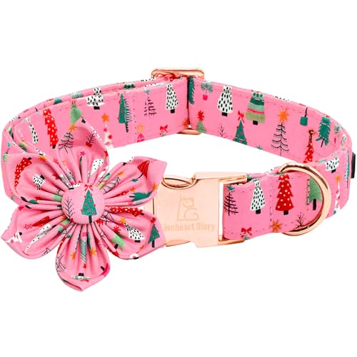 Lionheart glory Dog Collar with Flower Christmas Tree Pink Dog Collar for X-Small Dogs, Adjustable Soft Sturdy Girl Collars Flower Puppy Collar Flowers Cute Collars