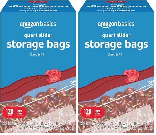 Amazon Basics Slider Quart Food Storage Bags, 120 Count (Previously Solimo) (Pack of 2)