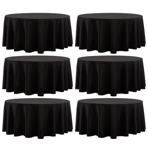 Aocoz Round Tablecloth 6 Pack 90 Inch Black Tablecloths Washable Decorative Linen Polyester Table Clothes Cover for Dining Table Banquets Buffet Parties and Wedding