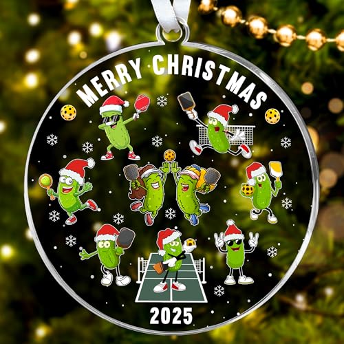 HEXMOZ Pickleball Christmas Ornament - Funny Pickles Gifts for Women, Men - Sports Gifts for Pickleball Lovers, Funny Gag Gift for Christmas - Acrylic Ornaments Exchange Ideas, Pickle Xmas Décor