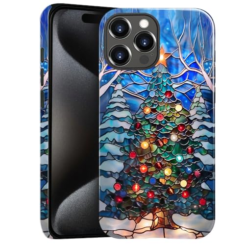 Case for iPhone 16 - Slim Fit Anti-Scratch Phone Case for Girl Women - Christmas Tree Stained Glass (Glossy)