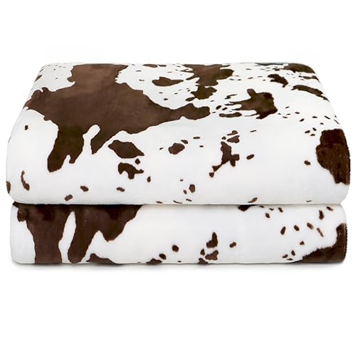 Brown Cow Print Blanket for Kids - Plush Soft Flannel Small Blanket Throw for Crib, Stroller, Travel, Warm Fleece Bedding Decor for All Seasons - Cute Cow Gifts for Girls, Boys 40x50 Inches