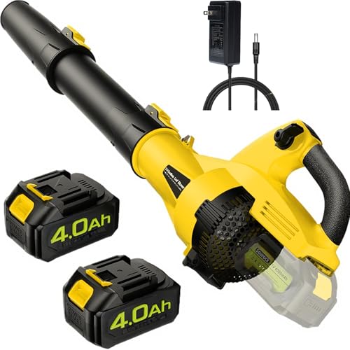 Upgraded Leaf Blower Cordless, 500CFM Electric Blower with 2 Batteries and Charger, 7 Speed Mode, 4.0Ah Lightweight Battery Powered Cordless Leaf Blower for Lawn, Patio, Driveway, Yellow