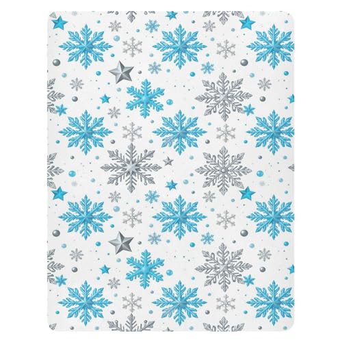 Pfrewn Christmas Crib Sheets for Boys Girls Silver and Blue Glittering Snowflakes Stars Fitted Crib Sheet Fits Standard Crib Mattress Pads Winter Pattern Stretch Soft Toddler Baby Sheet,52x28IN