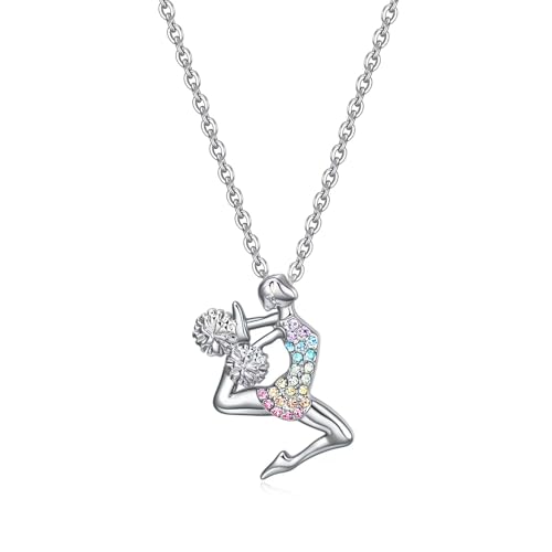 Cheerleader Gifts for Girls,Rainbow Cheerleader Necklace Cheerleading Girl Jewelry Pendant,Sport Cheer Accessories Birthday Gifts for Girls Daughter